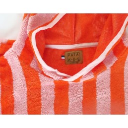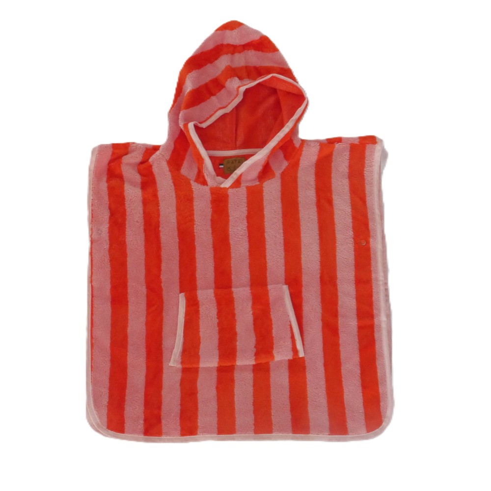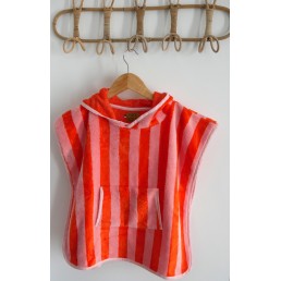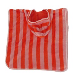 Poncho éponge rayé rouge/rose